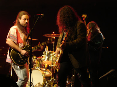 Da esquerda para a direita: Ivan Scartezini ao fundo na bateria, eu (Luiz Domingues) e Xando Zupo. Pedra ao vivo no Centro Cultural São Paulo. Lançamento do CD Pedra II. 18 de julho de 2008. Click, acervo e cortesia: Marinho Rocker