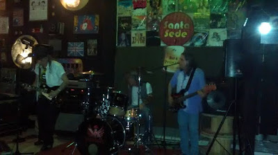 Da esquerda para a direita: Kim Kehl, Carlinhos Machado, na bateria e eu (Luiz Domingues). Os Kurandeiros no Santa Sede Rock Bar de São Paulo, em 15 de janeiro de 2016. Click, acervo e cortesia: Jani Santana Morales
